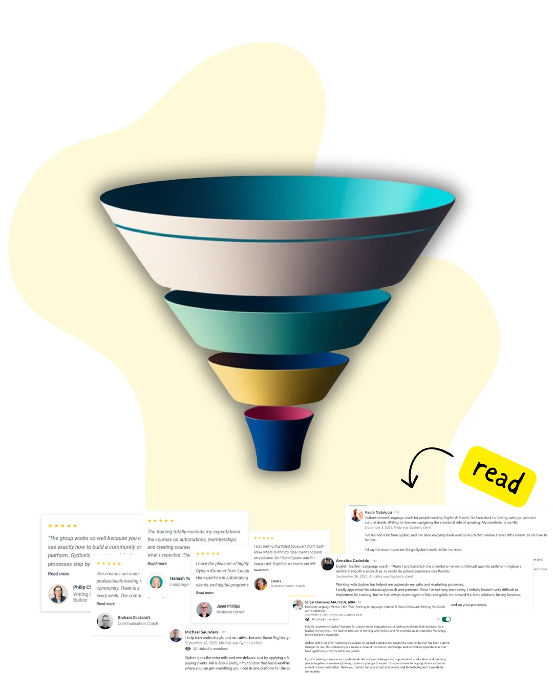 I was feeling frustrated because I didn't really know where to find my ideal client and build an audience. So I found Gydion and I’m so happy I did. Together, we tested out different kinds of messaging I could write to start a conversation with potential clients on LinkedIn or Facebook. He also helped me to get up the courage to reach out to them, just be myself, and build a relationship. Not only does Gydion have a good understanding of building relationships, but his system is fantastic. It shows you step by step what to do to grow and nurture your audience and to get on a sales call with them to make sales. I'm still working on it, but I've really come a long way with Gydion. He has a wealth of knowledge and a great system. He has great training videos that are very valuable and helpful and he's always there to support you. No matter how trivial my question seemed, he always took the time to help me out. His support, knowledge, and help is fantastic. I highly recommend Gydion to help you make contacts, build relationships, and make sales. Thank you so much, Gideon. It's a pleasure working with you. And I'm so happy I got to meet you. You're a fantastic human being.